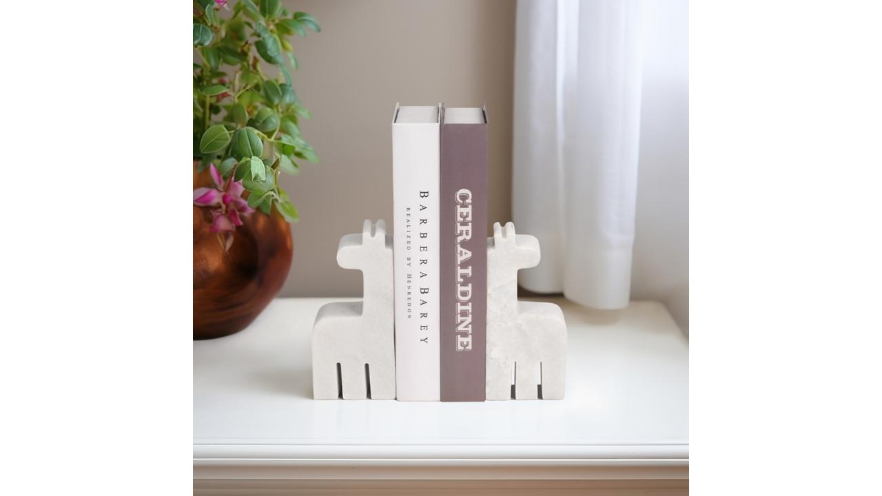 SUJETALIBROS JIRAFA, BLANCO MÁRMOL, S/2 7"