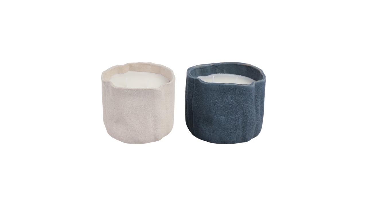 S/2 VELA ONDULADA DE PLAYA ROSA, MARFIL/AZUL 6" 31 OZ