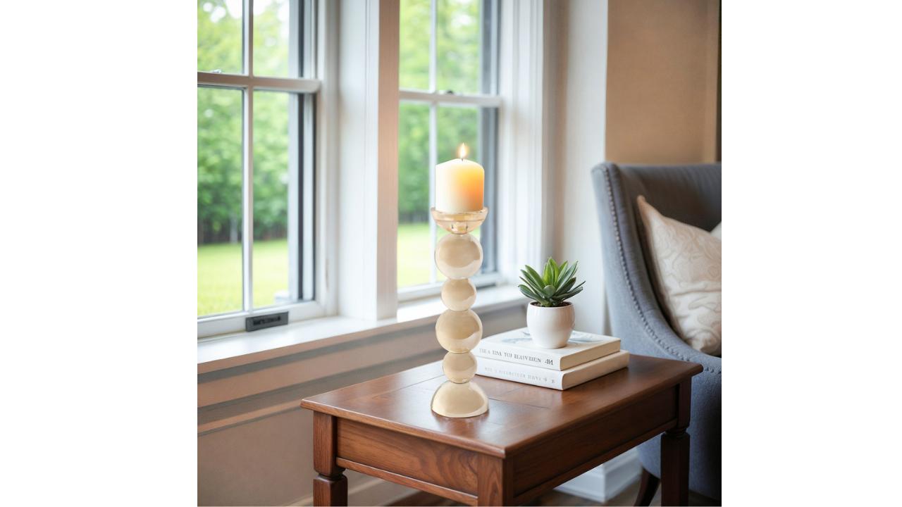 CANDELABRO DE CRISTAL DE BURBUJA MÚLTIPLE DE 13" CON CONO, A