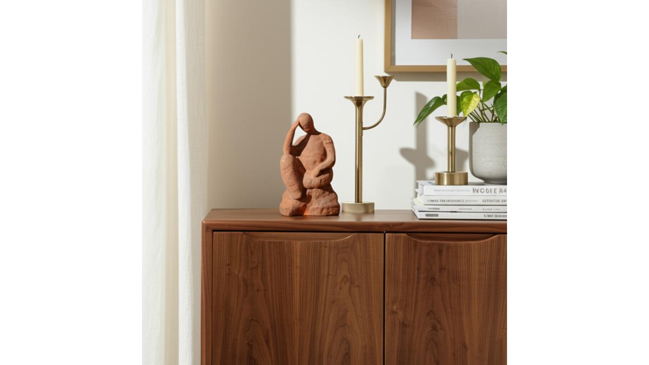 ESCULTURA HOMBRE PENSANTE 8" EN ROCA, TERRACOTA